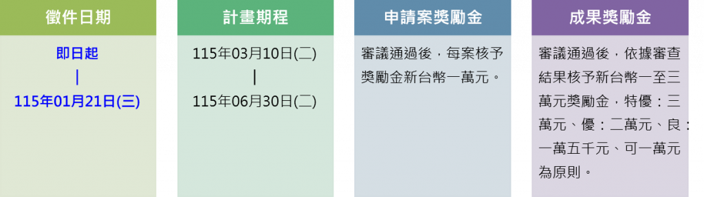 【計畫徵件】敬邀全校教師參與114.2學期「獎勵教師精進與創新實務教學計畫」申請,即日起至115年01月21日(星期三)截止。
